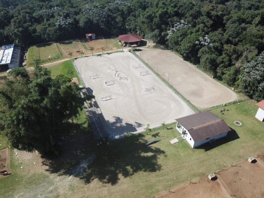 Aluguel de 44 baias 4×4, 11 piquetes, 1 redondel coberto, 1 pista de salto com piso mais moderno, 1 pista de adestramento e 1 restaurante